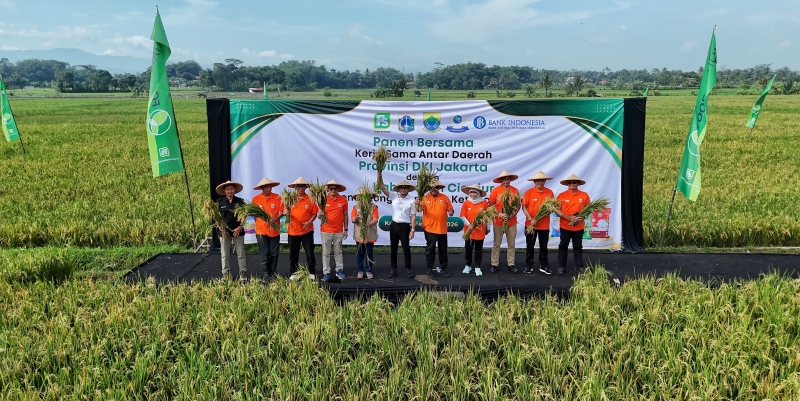 Wakil Gubernur Jakarta Rano Karno bersama Wakil Bupati Cianjur Ramzi Geys Thebe menghadiri panen bersama di Desa Sindang Jaya, Kecamatan Ciranjang, Kabupaten Cianjur, Jawa Barat, pada Kamis 12 Februari 2026. Kegiatan ini merupakan bagian dari kerja sama antardaerah antara Pemprov DKI Jakarta dan Pemerintah Kabupaten Cianjur guna mendukung ekosistem ketahanan pangan sekaligus mengendalikan inflasi daerah.(Foto: PPID DKI Jakarta)