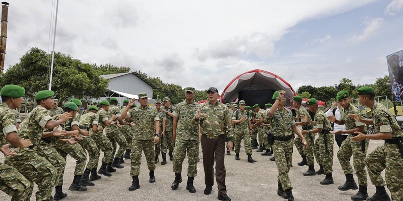 Menteri Pertahanan Sjafrie Sjamsoeddin didampingi Wakil Panglima TNI Jenderal Tandyo Budi R meninjau langsung Yonif TP 888/Satria Sejati di Kecamatan Pamotan, Kabupaten Rembang, Jawa Tengah, Selasa, 17 Februari 2026. Kunjungan ini merupakan bagian dari upaya memastikan pembangunan kekuatan pertahanan dimulai dari satuan yang disiplin, siap tempur, serta mampu memberikan manfaat nyata bagi rakyat. (Foto: Puspen TNI)