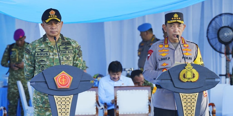 Panglima TNI Jenderal Agus Subiyanto bersama Kapolri Jenderal Listyo Sigit Prabowo saat pimpin Apel Gelar Pasukan di kawasan Monumen Nasional (Monas), Jakarta Pusat, Kamis, 12 Maret 2026 (Foto: Humas Mabes Polri)
