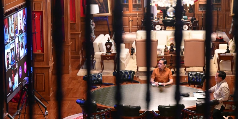 Presiden Prabowo Subianto menggelar rapat terbatas (ratas) secara virtual bersama 15 menteri Kabinet Merah Putih pada Sabtu 28 Maret 2026. Rapat yang berlangsung sejak siang hingga sore hari tersebut membahas arah dan penyesuaian kebijakan strategis pemerintah ke depan.(Foto: Setpres RI)