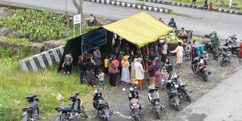 Puluhan warga memadati tempat pelaksanaan program pangan murah di Kabupaten Puncak Jaya, Papua Pegunungan, Rabu, 1 April 2026. Program ini diselenggarakan Komando Distrik Militer (Kodim) 1714/Puncak Jaya bekerja sama dengan Bulog sebagai upaya strategis untuk menjamin ketersediaan pangan yang terjangkau dan memperkuat kemandirian pangan di wilayah yang memiliki tantangan geografis serta kondisi logistik yang khas. (Foto: Puspen TNI).