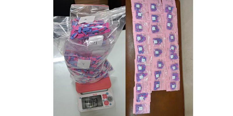 Dari tangan kedua pelaku, polisi menyita 2.700 butir ekstasi, Pil berwarna merah muda dan biru berlogo Marvel