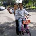 "Jokowi" Dan "Prabowo" Boncengan Naik Ontel Di Medan