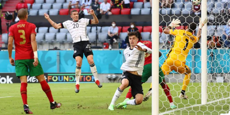 Diawali dengan serangan dari sisi kiri, umpan Gosens disambut cepat oleh Kai Havertz pada menit 35. Bola sempat mengenai kaki Ruben Dias sebelum memasuki gawang Portugal.