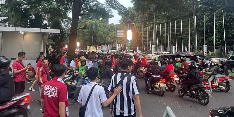 Sambil berjalan menuju SUGBK mereka meneriakkan yel-yel “Indonesia, Indonesia, Indonesia”, memberikan dukungan untuk skuad Garuda.
