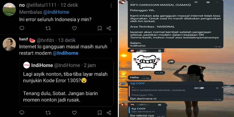 Di media sosial, keluhan membanjiri lini masa, dengan sejumlah tagar terkait IndiHome dan Telkom mulai ramai diperbincangkan. Pengguna mempertanyakan apakah gangguan terjadi secara nasional.