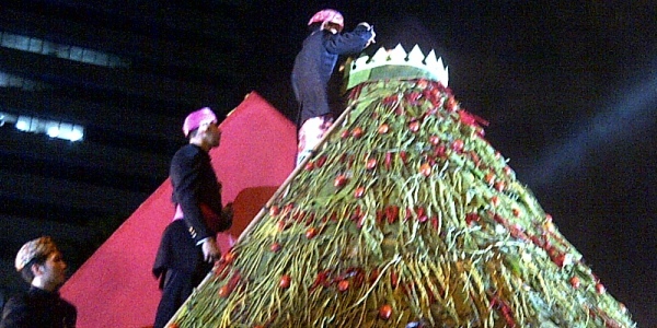 Tumpeng raksasa setinggi 4,86 meter menjadi suguhen menarik pada perayaan HUT DKI ke-486 di Silang Monas, Jakarta Pusat, Sabtu (22/6) malam. Pemotongan tumpeng oleh Gubernur DKI Jakarta Joko Widodo disaksikan ribuan masyarakat yang memadati acara.Elitha Tarigan/jbc